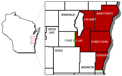 We cover all of Manitowoc, Calumet and Sheboygan counties. We also cover Fond du Lac county up to and including the city of Fond du Lac, then a line south of the city to the county line. Finally, we cover Ozaukee county down to Port/Saukville area.